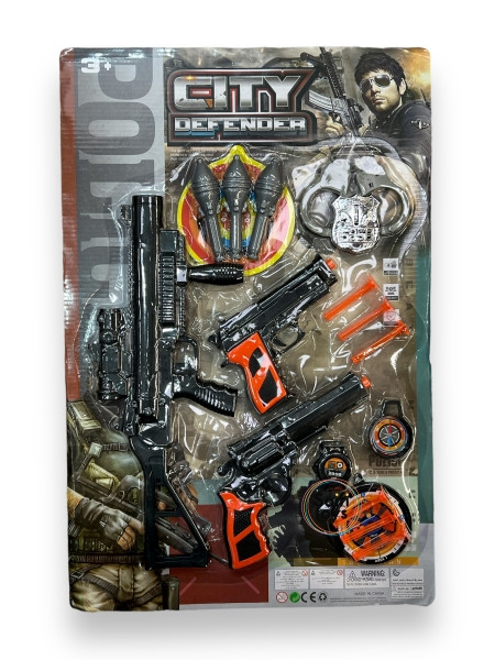 Набор Полиция непременно понравится юному герою. С этим игровым оружием ваш ребёнок будет придумывать увлекательные спецзадания, защищать мир и стоять на страже порядка. Игры с оружием помогут развить: координацию движений, воображение, ловкость, меткость. В комплекте: пистолет, наручники, патроны с присосками -3шт.