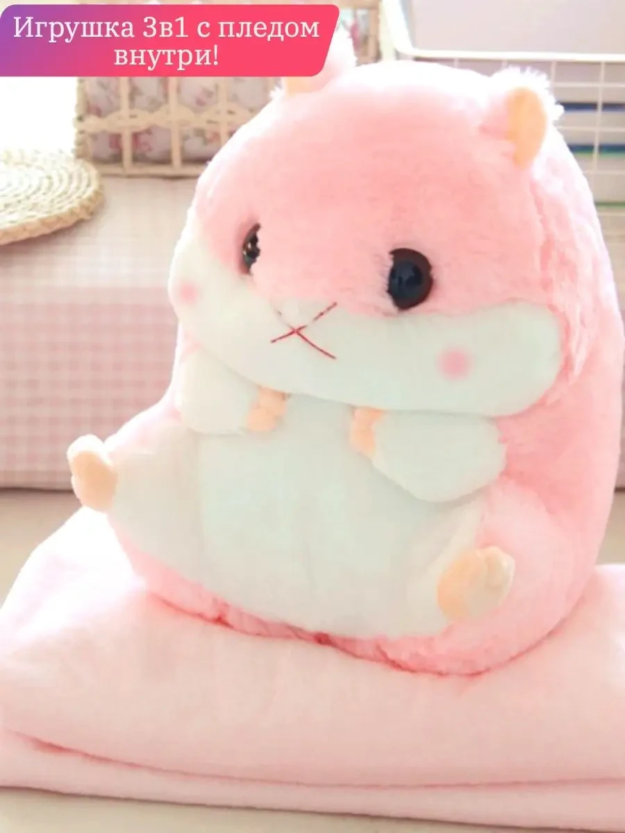 Размышляете над необычным подарком? Тогда Хомяк 3 в 1 именно то, что Вы искали! Милая игрушка, мягкая подушка и теплый плед. Всё это можно подарить сразу, купив одного хомячка. Плед-игрушка Хомяк 3 в 1 будет полезна и поднимет настроение как взрослым, так и детям!Плед-подушка Хомяк 3 в 1 таит внутри себя уютный мягкий тёплый плед (одеяло), что делает её не просто интересным дополнением к декору, но и практичным и удобным аксессуаром для сна. Так же подушка Хомяк 3 в 1 станет помощником в путешествиях и выездах на природу. Просто возьмите её с собой и эта милая зверюшка непременно вас порадует и согреет в самый нужный момент.Характеристики игрушки-подушки с пледом Хомяк 3 в 1:- Размер игрушки: 30 x 25 см- Размер пледа: 100 x 180 см