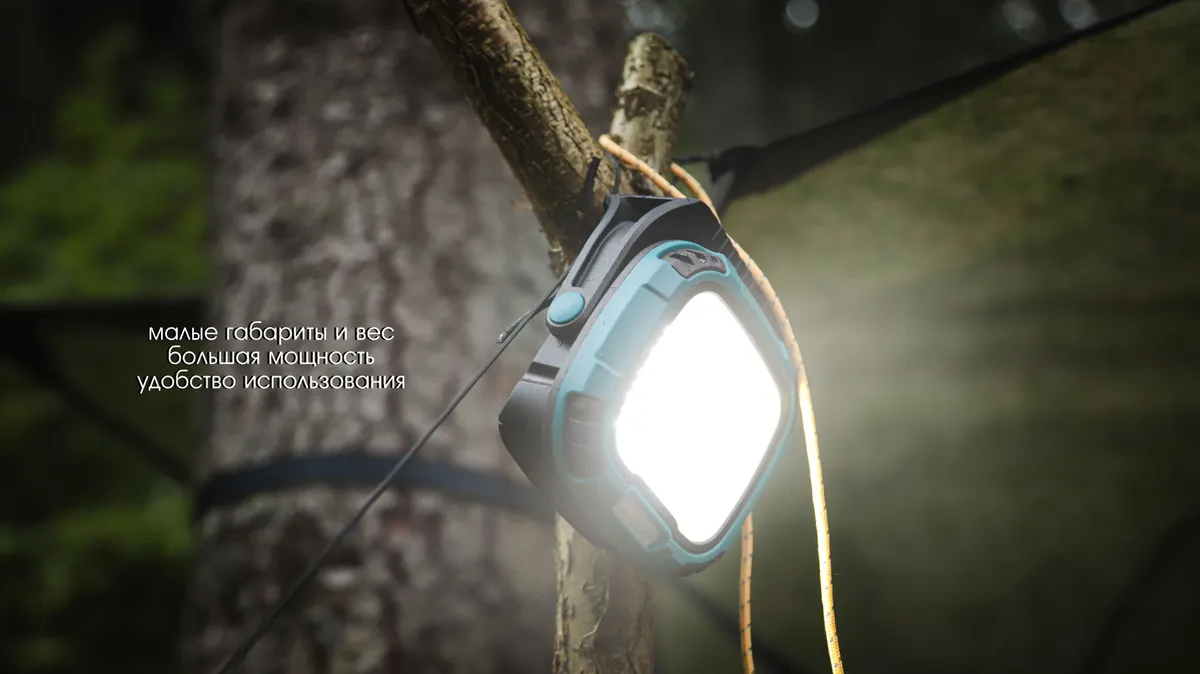 Особенности прожектора Компактный и очень мощный фонарь - прожектор, который идеально подходит для использования на стройках, во время ремонта и монтажа, а также в быту и различных туристических поездках. Это идеальный фонарь для кемпинга или рыбалки - он имеет малый вес и габариты, но обеспечивает невероятно яркий свет.