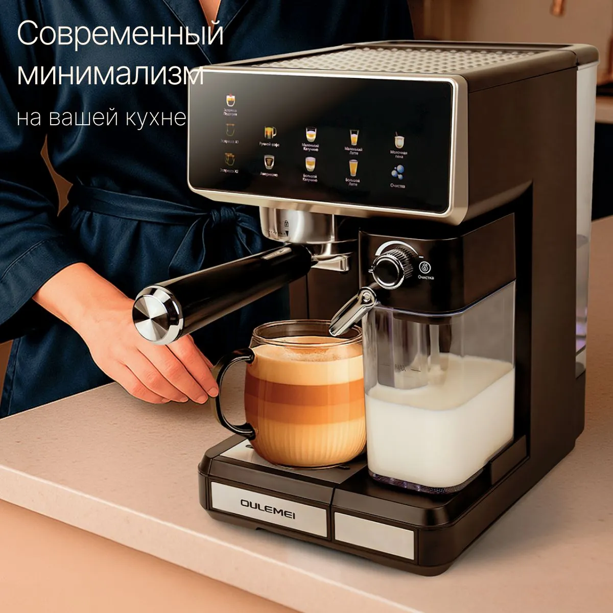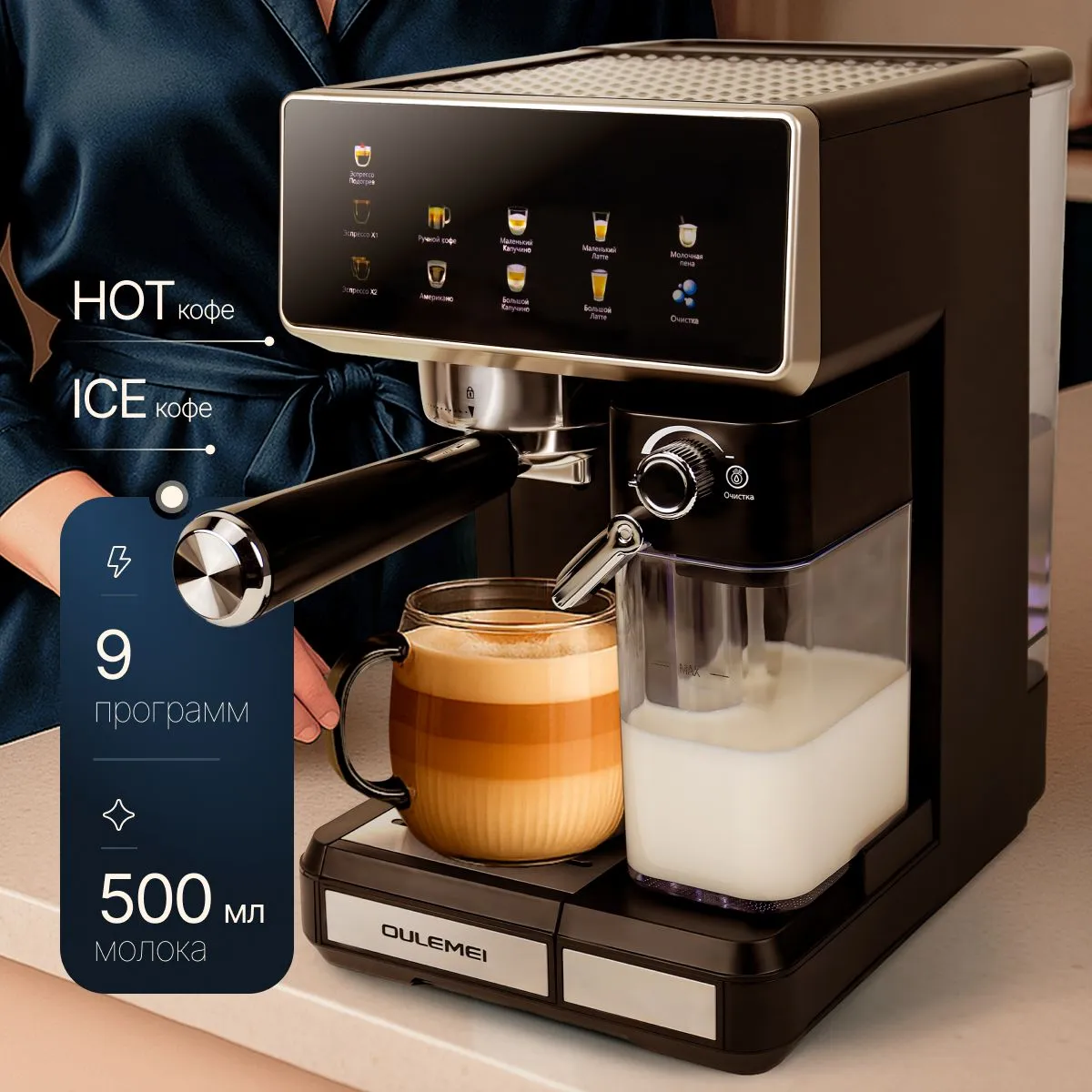 Кофемашина OULEMEI 9 в 1 — горячий и холодный кофе как в кофейне Оцените качество бариста с кофемашиной OULEMEI 9 в 1. Мощность 1350 Вт и давление 20 бар обеспечивают насыщенный вкус и идеальную пенку в каждом напитке